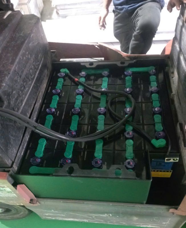 Khách hàng của Nam Hải Batteries kinh doanh và sản xuất mặt hàng bao bì giấy carton và khuôn sắt. Bởi đặc thù ngành hàng và điều kiện mội trường nên toàn bộ xe nâng trong nhà xưởng đều sử dụng xe nâng hàng điện. Chiếc xe nâng được khách hàng thay bình điện Lifttop công suất 48V/485Ah/5Hr mới 100% lần này là chiếc xe nâng điện thương hiệu Toyota model 7FB15 xuất xứ tại Nhật Bản sử dụng vỏ khuyết góc nhỏ, kiểu dạng ngồi lái. Vỏ bình này thường được sử dụng lắp bình công suất 48V/400Ah hoặc 48V/485Ah. Bình ắc quy cũ mua theo xe đã sử dụng thời gian dài, không còn khả năng đáp ứng nhu cầu hoạt động sản xuất của công ty nên khách hàng quyết định đặt mua bình điện mới của Nam Hải Batteries. Việc chốt hợp đồng mua bình điện và bàn giao hàng hóa nhanh chóng để khách hàng đảm bảo tiến độ công việc được tiến hành trong vòng 02 ngày làm việc bởi kho vỏ bình luôn được dự trữ sẵn trong kho Nam Hải Batteries.