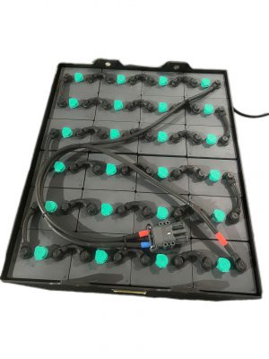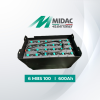 Bình ắc quy xe nâng Midac model 8MDL105 công suất 48V/840Ah/5hr kiểu loại cell DIN được xếp với quy cách 4×6 thuộc dòng ắc quy công suất lớn, phù hợp với các dòng xe 3-3,5 tấn. Bình ắc quy xe nâng bao gồm 24 cell nhỏ công suất 2V/840Ah/5hr được lắp ráp và kết nối với nhau bằng dây cáp nối đầu cực dạng bắt ốc, dây cáp điện, nắp đậy và vỏ thùng. Tổ hợp này hình thành nên một bộ bình ắc quy xe nâng 48V. Cell ắc quy và các linh – phụ kiện đều được nhập khẩu từ nhà máy tại Italy. Vỏ bình ắc quy được sản xuất trong nước, được sơn phủ bằng lớp sơn E-poxy giúp giảm thiểu việc bị Acid ăn mòn và phù hợp với từng khoang chứa ắc quy của loại xe nâng khác nhau, hỗ trợ chi phí và tiết kiệm thời gian giao hàng cho khách hàng.